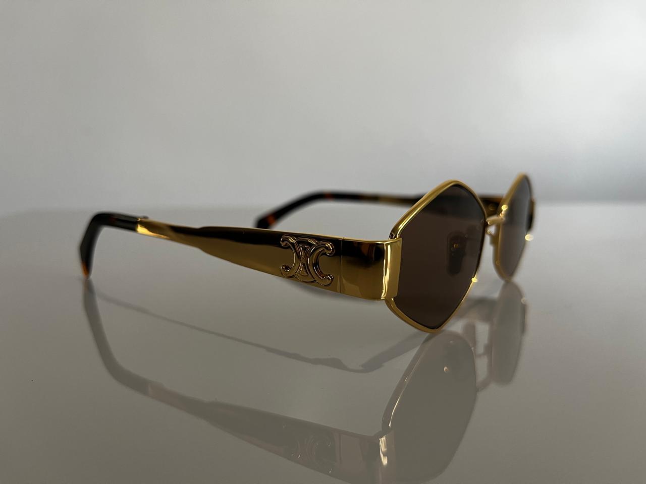 COMPRIMENTO DA HASTE TEMPORAL 5,3 POL. LARGURA DA LENTE 2,1 POL. COMPRIMENTO DA PONTE NASAL 0,6 POL. ARMAÇÃO METÁLICA ARMAÇÃO GRÁFICA LENTES MORRONS PROTEGE DOS RAIOS UVA E UVB TRIOMPHE SIGNATURE NAS HASTES